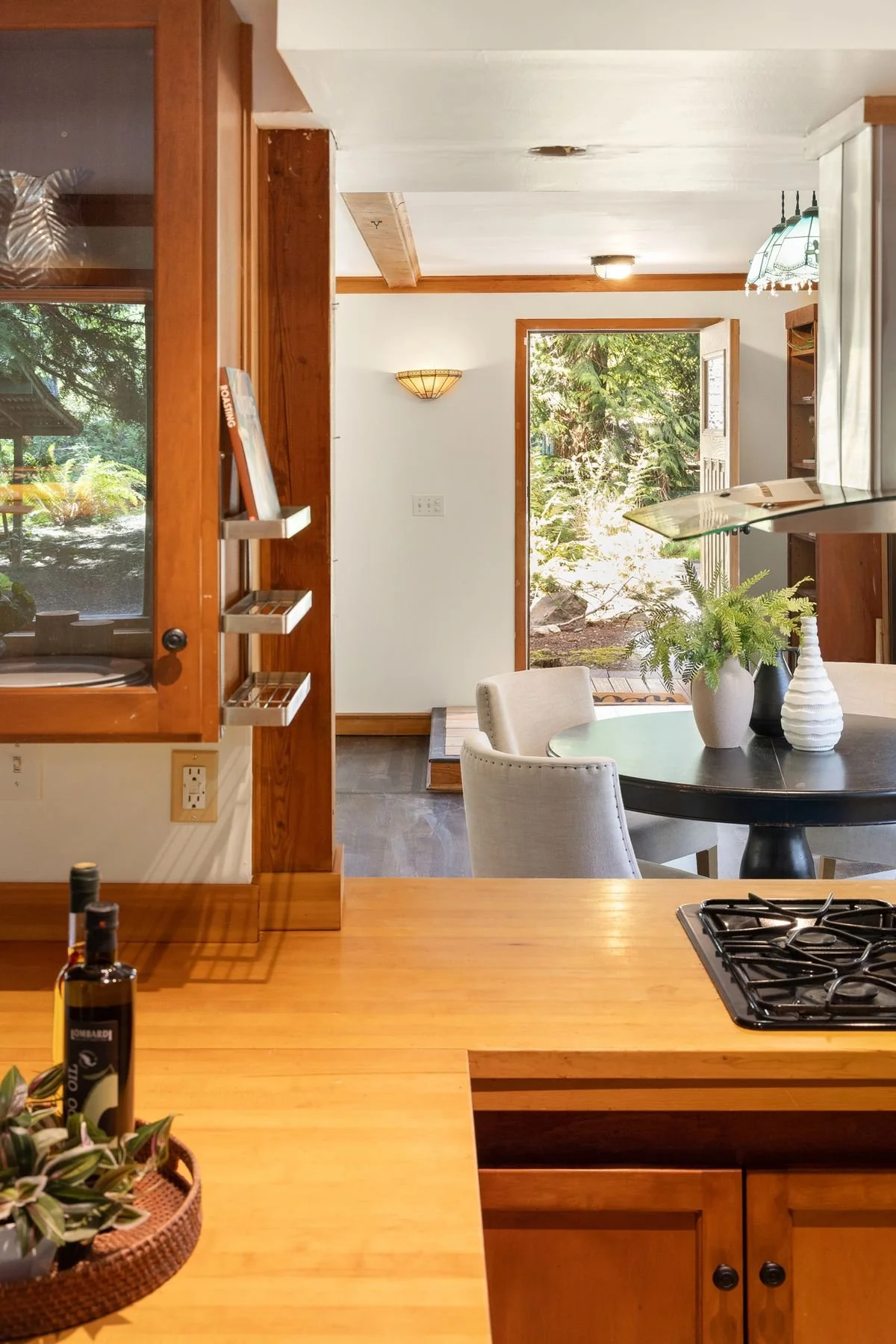 Welcome home to peace and quiet on beautiful Casey St. Set on a tranquil shy half acre, abundant with fruit trees and wooded areas, this three bedroom home is an incredible opportunity. The main floor living and dining space has newly refinished hard wood floors and flows easily to the outdoor, covered side deck. The large kitchen has warm wood finishes and opens to a large deck and south facing back yard. Upstairs has vaulted ceilings with three bedrooms, one with a fun loft; a full bath with jetted tub and a half bath. Outside, the property includes a hot tub pad, shed, fire pit and garden spaces. Across the yard is the private, flexible separate studio. Ideally located close to the ferry, Winslow and the Yaquina Ave. beach access.