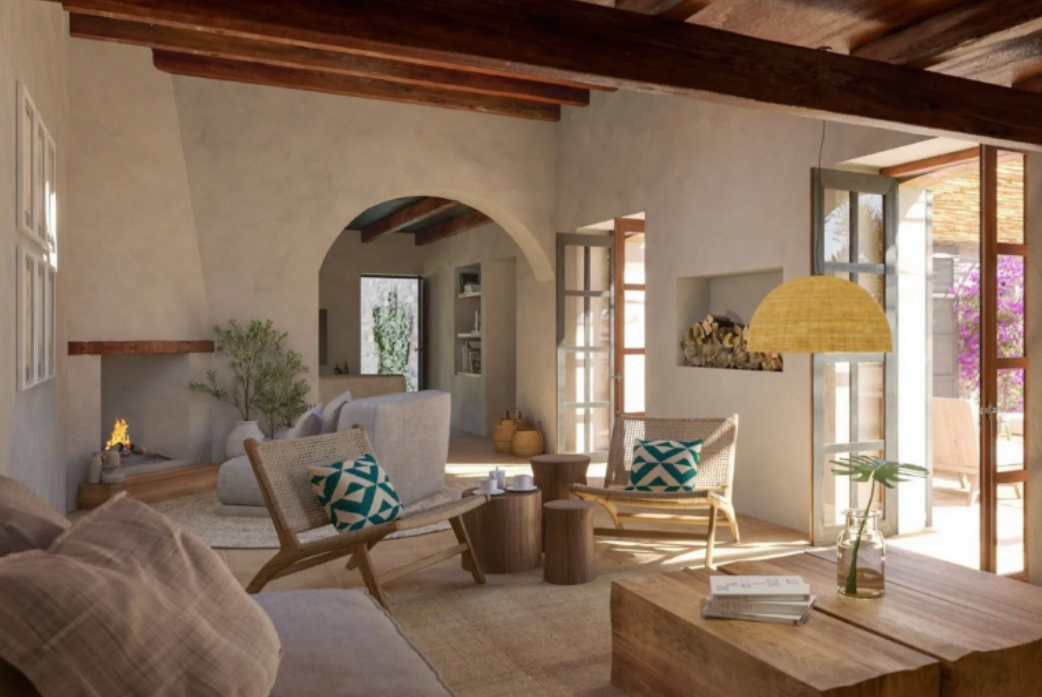 With its gleaming white sands and aquamarine seas, the Mediterranean isle of Formentera has gained prominence as a glamorous getaway destination. Its diminutive size and straightforward ferry access from nearby Ibiza have ensured that it’s always had a small permanent population, and the majority of beachgoers are visiting vacationers. But that just makes the deluxe homes there, like this gorgeously rustic residence, all the more rarified.